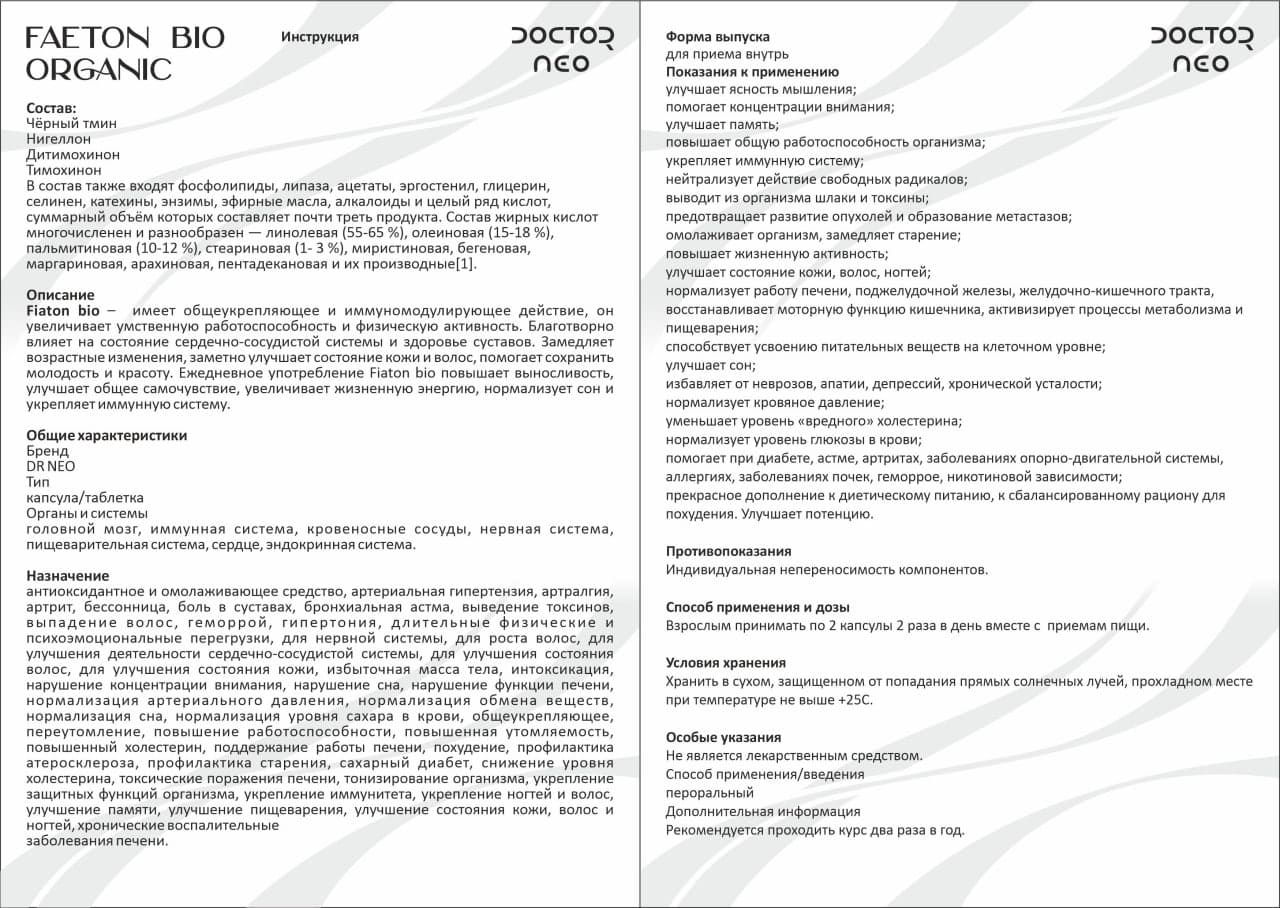 Кейинроқ қон томирлари мустаҳкамланади ва қон босими ҳатто оғир ҳолатларда ҳам нормаллашади. “FAETON BIO ORGANIC” кимёвий дорилардан фарқли ўлароқ, томирларга зарар етказмайди.